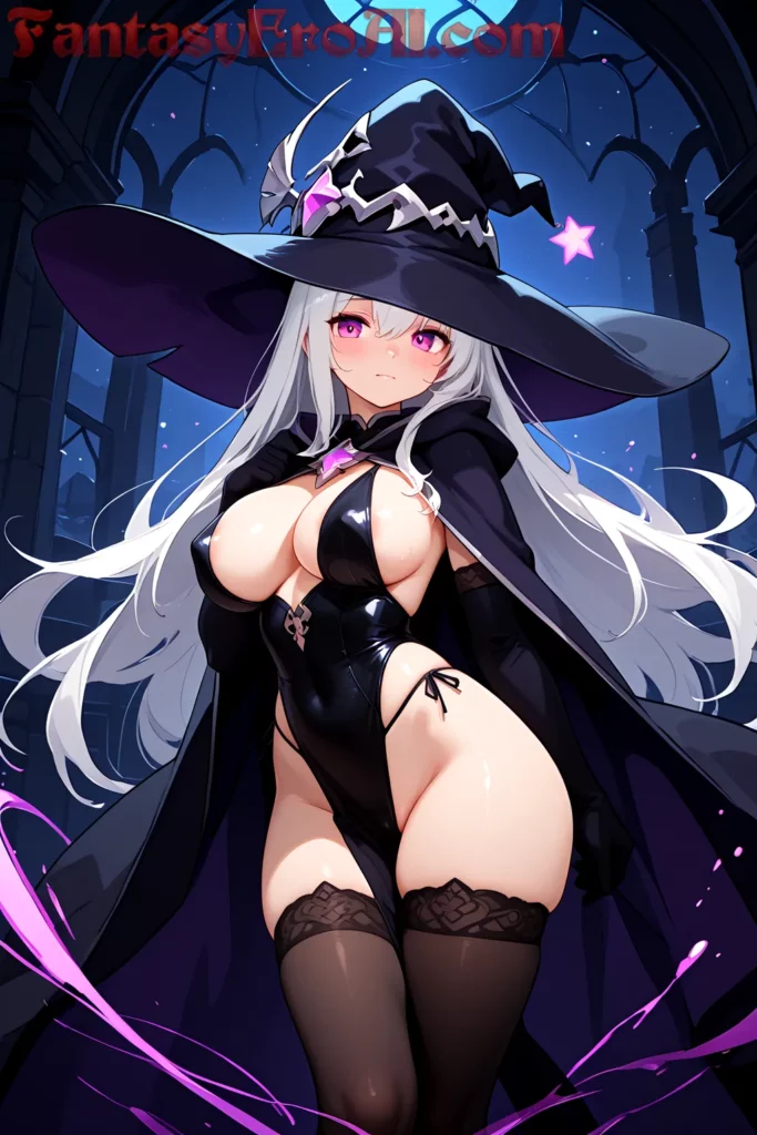 La guerrera bruja batalla en castillo de sombras encantadas, arte erótico fantasía